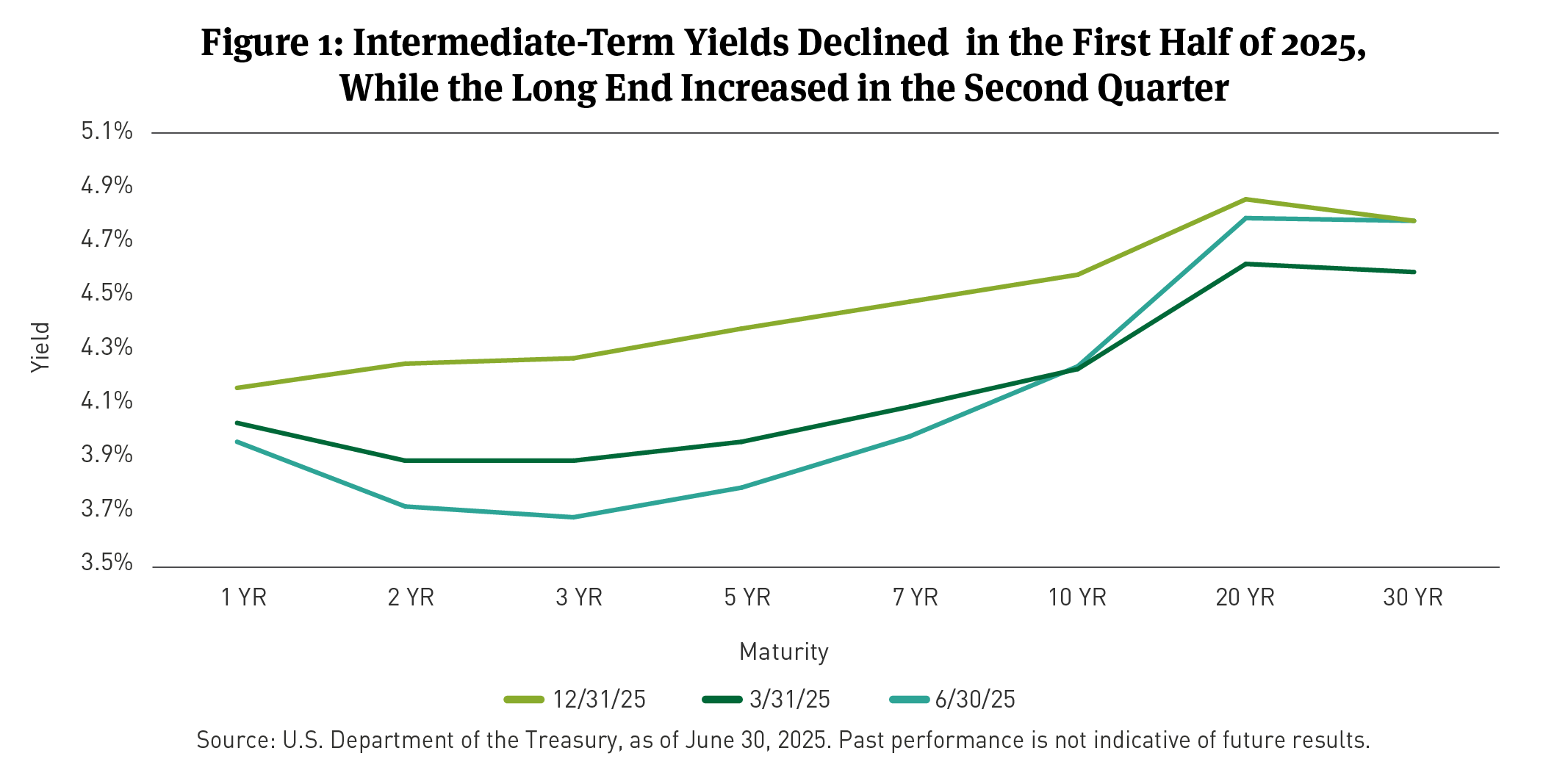 Despite the surge, municipal bonds, as measured by the BBG Short/Intermediate Municipal Bond Index, posted a positive return at 0.94 percent in June, 1.33 percent for the quarter ended June 30, and closed the first half of 2025 up 1.82 percent.