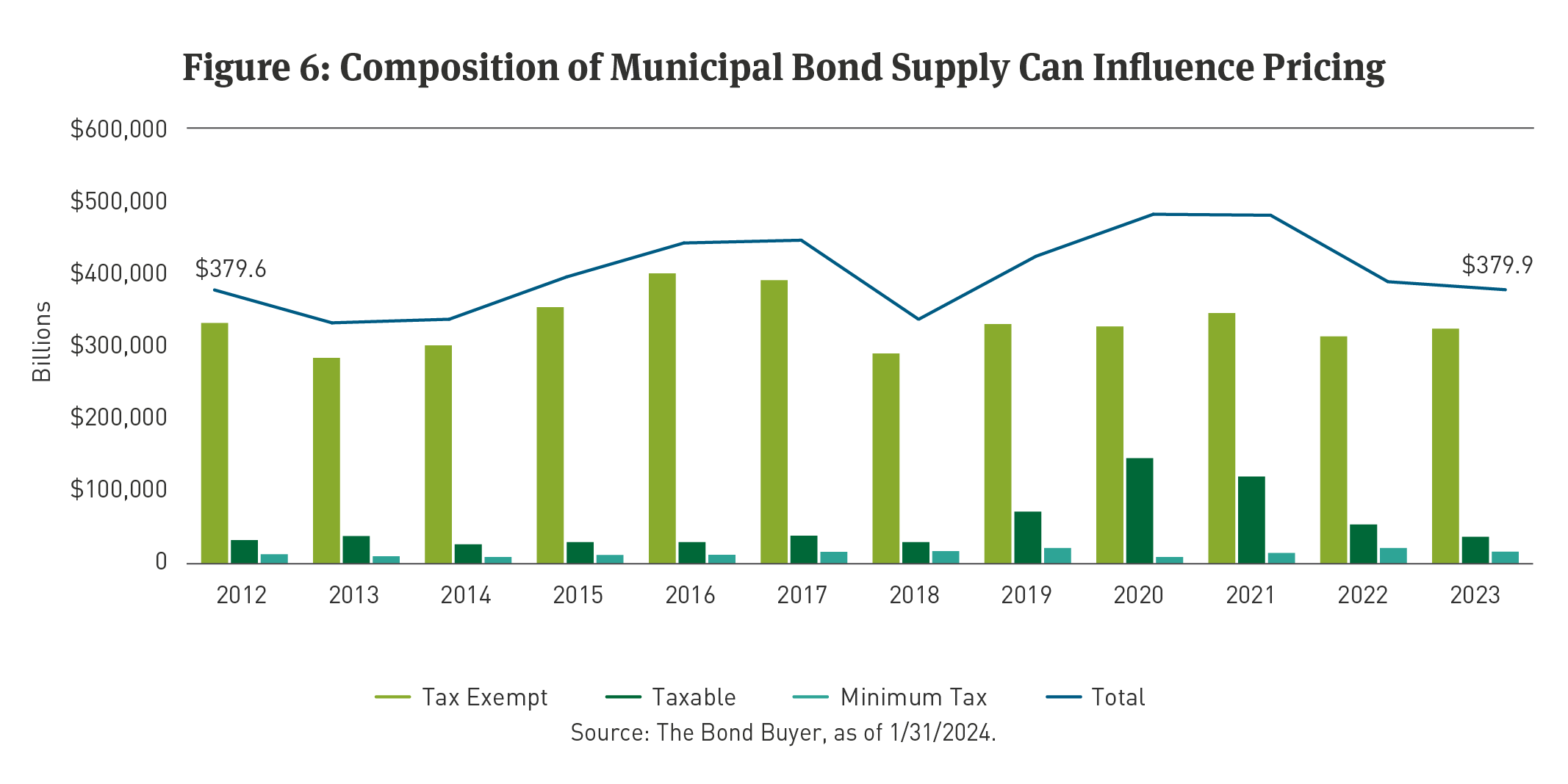 First, municipal issuance has been tepid. Issuers avoided borrowing in the 2010 to 2016 period to repair their balance sheets in the aftermath of the Great Financial Crisis (GFC), based on data reported by The Bond Buyer. (See Figure 5.)